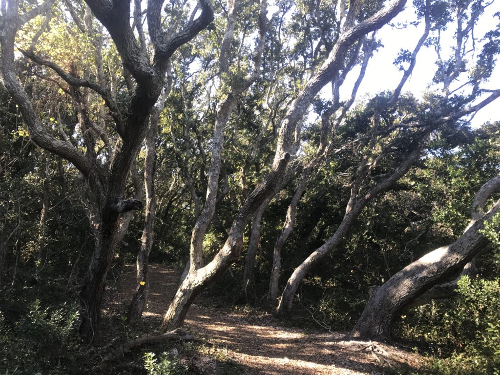 Our campsite was on the ocean side of the Outer Banks, and only a few miles from the Wright Brothers National Monument. This monument tells the story of “first flight” and was surprisingly interesting. Another fun outing was our “visit” to Currituck National Wildlife Refuge. Much to our surprise, when we arrived at the park entrance there was no road. You were simply diverted to the beach with the warning “4 wheel drive vehicles only”. After a bit of deliberation, we took our Honda CRV down the beach for 5 miles or so, ate our lunch, and returned when it was clear that the tide was coming in. The whole thing was something of a pick-up-truck-wild-west with trucks going every which way, some at high speeds. We never got to the main part of the refuge, but it was still an experience.
